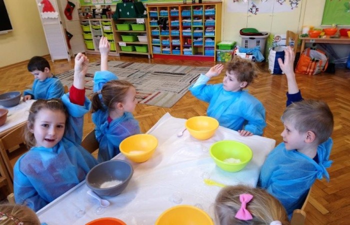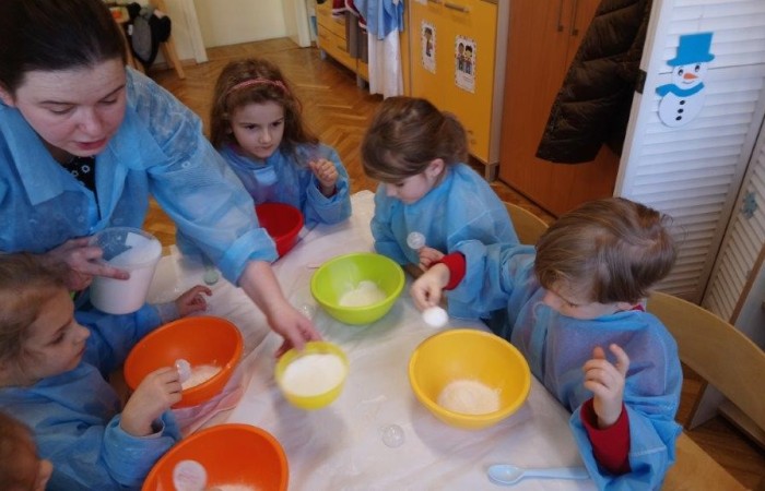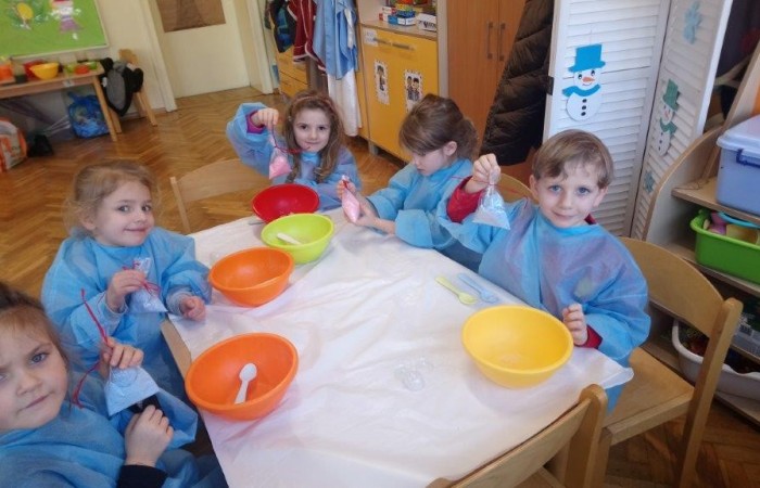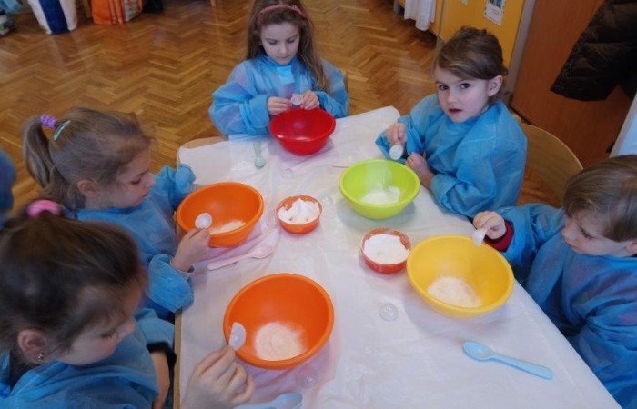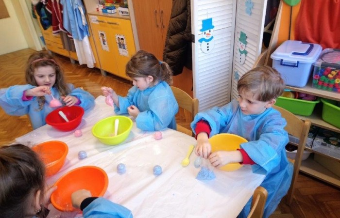 Ponownie spotkaliśmy się w styczniu na naszych warsztatach naukowych. Tym razem robiliśmy musujące kule do kąpieli.