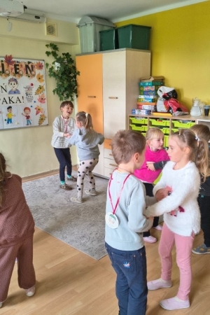 Nasi super chłopacy musieli wykazać się zręcznością i sprytem w różnych konkurencjach sprawnościowych. Dziewczynki mocno im kibicowały . Wszyscy chłopcy zasłużyli na medal Super Chłopaka i drobne, słodkie niespodzianki. Ten wesoły dzień zakończyliśmy wspólną zabawą przy muzyce.