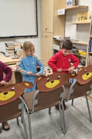 Następnie omówiliśmy masaż serca na przykładzie pluszowego misia, wiemy że należy wykonać 30 uciśnięć klatki piersiowej i wykonać 2 wdechy, trzeba też zawiadomić ratowników dzwoniąc pod numer 112. Potem była zabawa – zwijanie sznurka z cukierkiem na czas, kto pierwszy. Na zakończenie wizyty mogliśmy pooglądać książki dla dzieci o misiach.