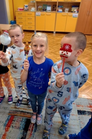 "Świąteczny czas" - ("Christmas Time!") realizacja Innowacji Pedagogicznej "English Special Days". Dzieci bardzo chętnie uczestniczyli w zabawach z pacynkami: Mikołaja, Renifera i Bałwanka przy piosence "Hello Reindeer".