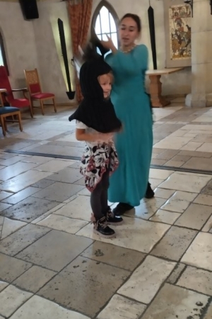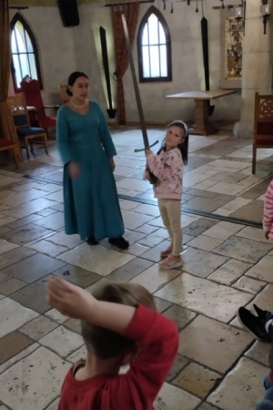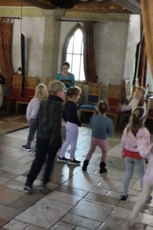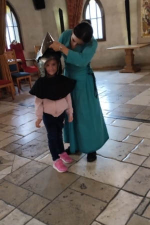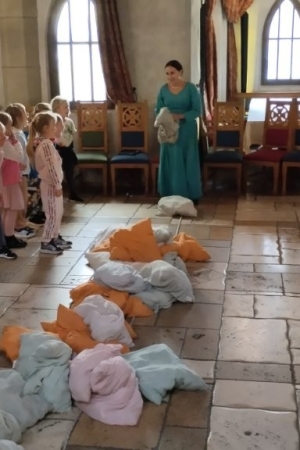 W zamku na dole, na sali mieszczan, przedszkolaki dowiedziały się wiele ciekawostek o chlebie, a następnie każdy wykonał swój własny po czym mógł zakosztować swego wyrobu. Dzieci nauczyły się średniowiecznego tańca oraz mogły przymierzyć strój rycerza. Wspomnienia długo zostaną nam w pamięci.