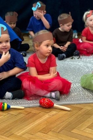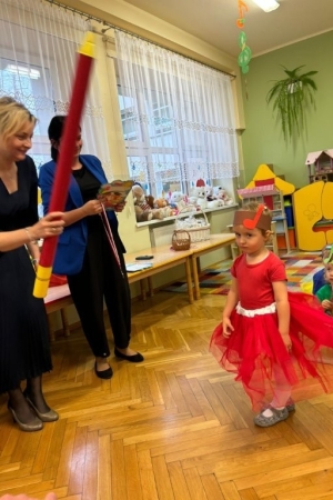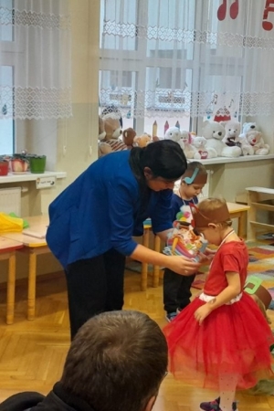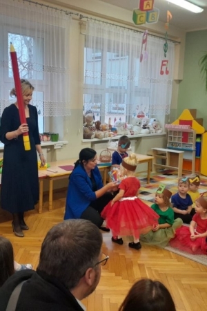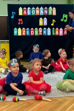 Mali artyści zaprezentowali przygotowane piosenki, taniec oraz wierszyki. Był to pierwszy, bardzo ważny występ dla maluszków. Po części artystycznej nastąpił akt pasowania każdego dziecka na przedszkolaka.