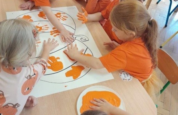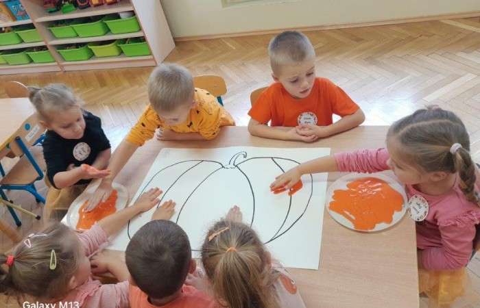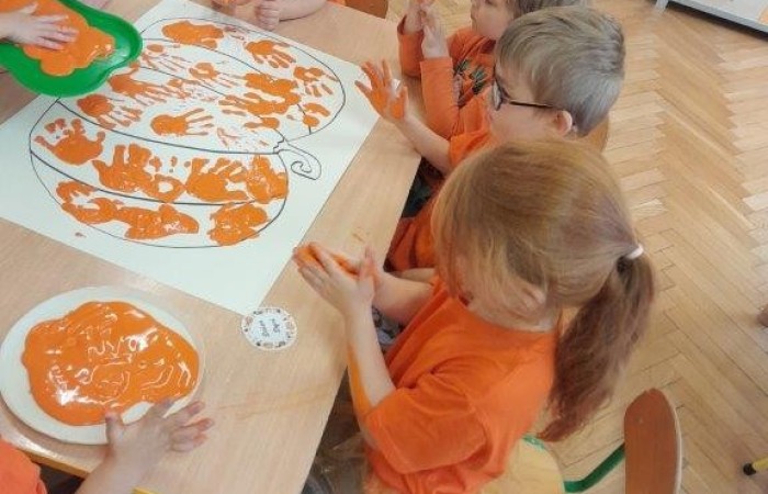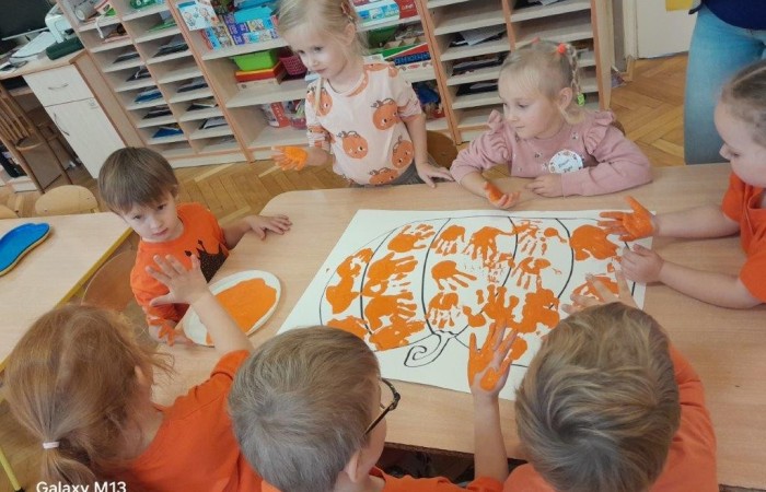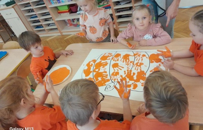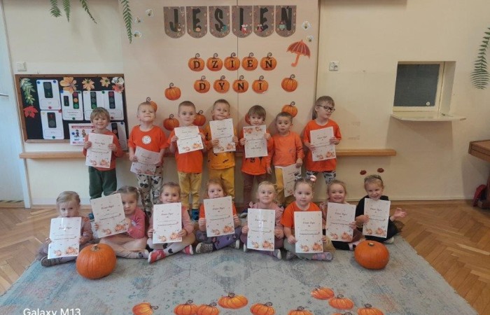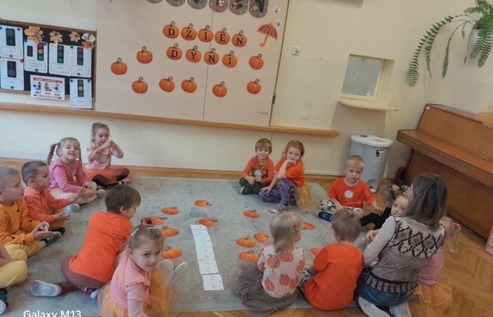 Nadchodzi koniec jesiennych zbiorów, więc to najlepszy czas by ogłosić „Dzień Dyni” W naszym przedszkolu święto to obchodziliśmy w środę 30 października, wtedy to wśród dzieci ubranych na pomarańczowo, można było poczuć się jak na dyniowej grządce.
