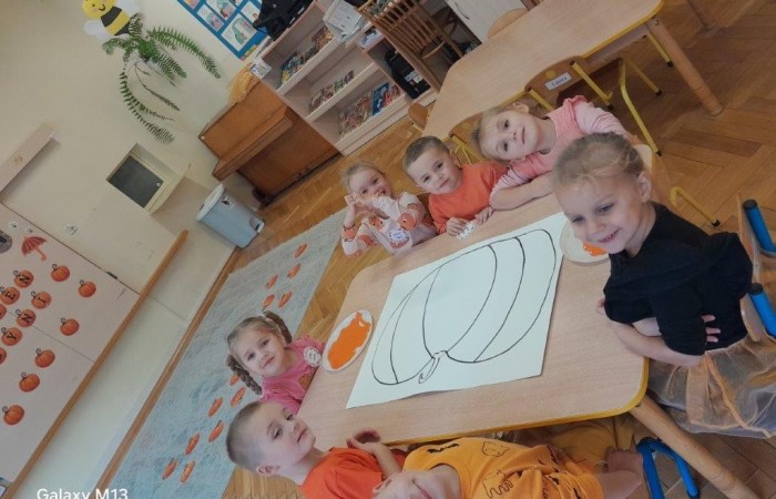 Dzieci poznały wielką różnorodność dyń i wzbogaciły wiedzę na ich temat. Dowiedziały się, że dynia jest bardzo zdrowym warzywem i, że można z niej przygotować wiele dań tj.: pieczywo, zupę, dżem, ciasto, babeczki, przetwory i soki. Dzieci miały okazję przekonać się jak smakuje zupa dyniowa, którą przygotowały dla nas panie kucharki.