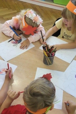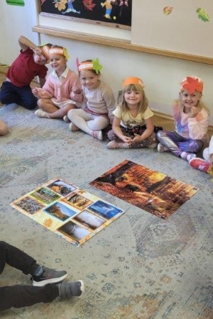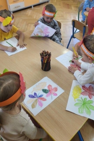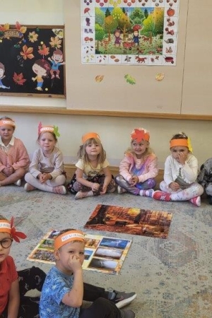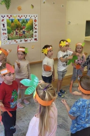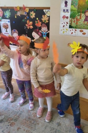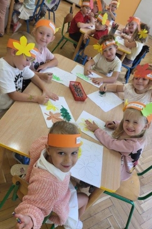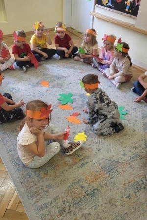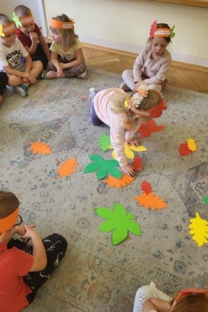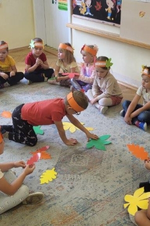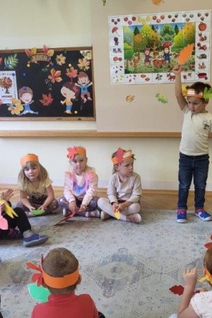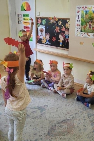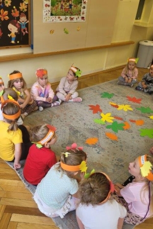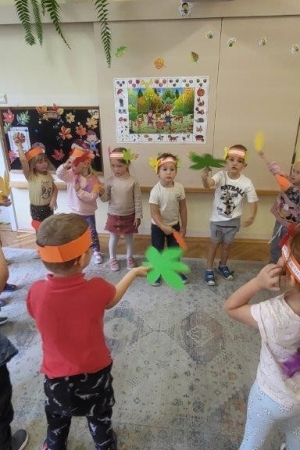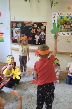 Pszczółki przywitały Pierwszy Dzień Jesieni. Były tańce, zabawy z listkami – nazywanie kolorów, segregowanie, przeliczanie oraz rozmowy o zmianach zachodzących w przyrodzie o tej porze roku!
