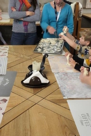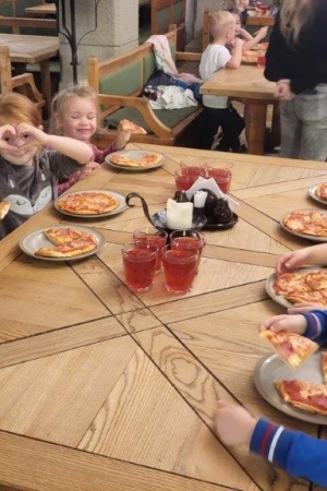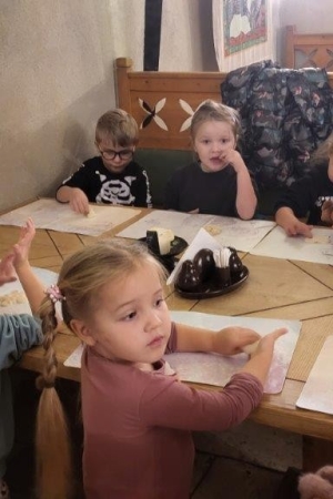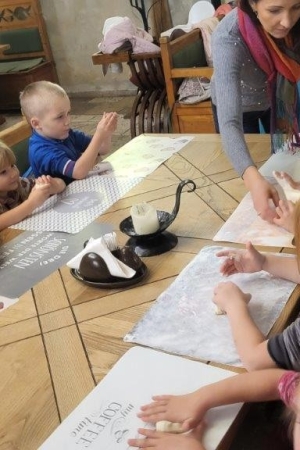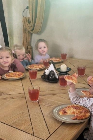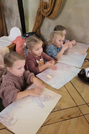Dowiedzieliśmy się ciekawostek o wypiekaniu chleba, a następnie sami mogliśmy zrobić własne wyroby. Bawiliśmy się w zabawy ruchowe – dziewczynki miały okazję być księżniczkami, a chłopcy rycerzami. Uczyliśmy się dawnych tańców, a nawet biliśmy się na poduszki! Na koniec zjedliśmy pyszne pizze oraz bawiliśmy się na zamkowym placu zabaw.