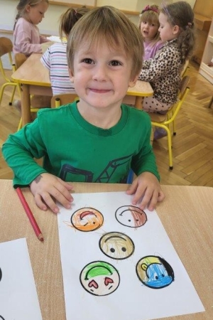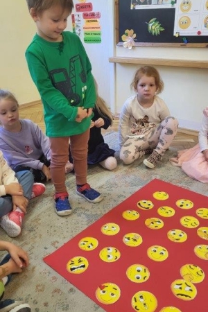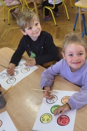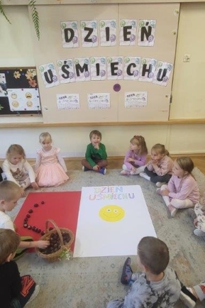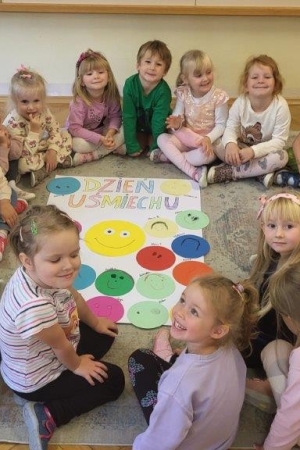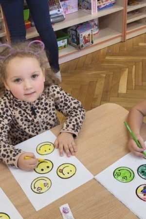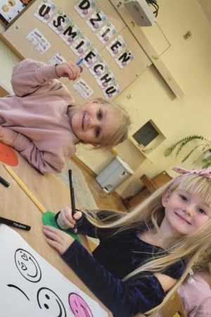 Był to idealny moment, aby uświadomić dzieciom znaczenie optymistycznego podejścia do życia. Uśmiech nic nas nie kosztuje, a jak wiele może znaczyć dla drugiego człowieka. Podczas zajęć przedszkolaki doskonaliły umiejętność rozpoznawania i nazywania uczuć.