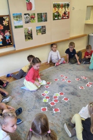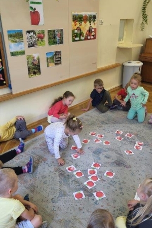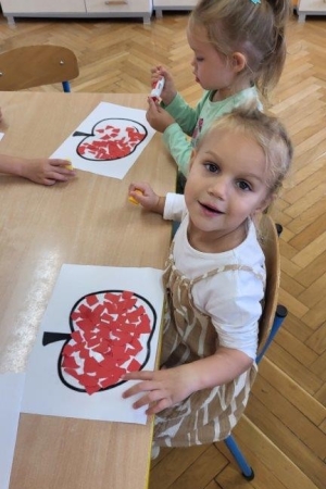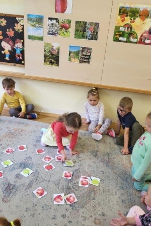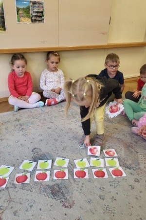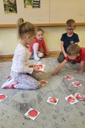 Dzieci odkrywały ciekawostki na temat tak ważnych dla nas owoców. Poznawaliśmy jabłka wielozmysłowo poprzez dotyk, zapach oraz smak. Przeliczaliśmy, porównywaliśmy, a także wykonaliśmy prace plastyczne.